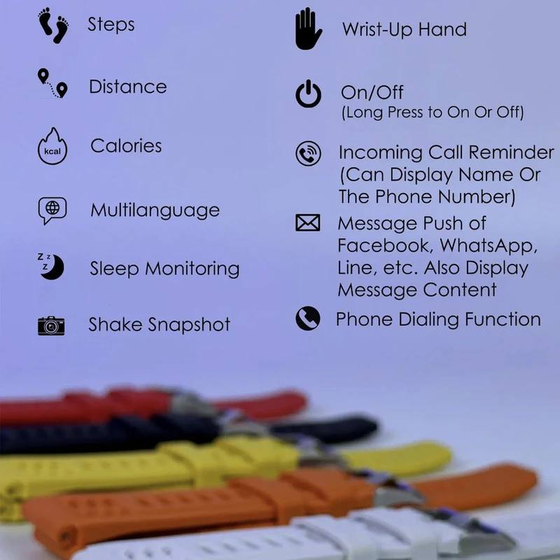 عملکرد تماس ، پخش موسیقی ، ضربان قلب مداوم ، کالری سنج ، مسافت سنج ، نظارت بر خواب ، یادآوری تماس ، زنگ هشدار