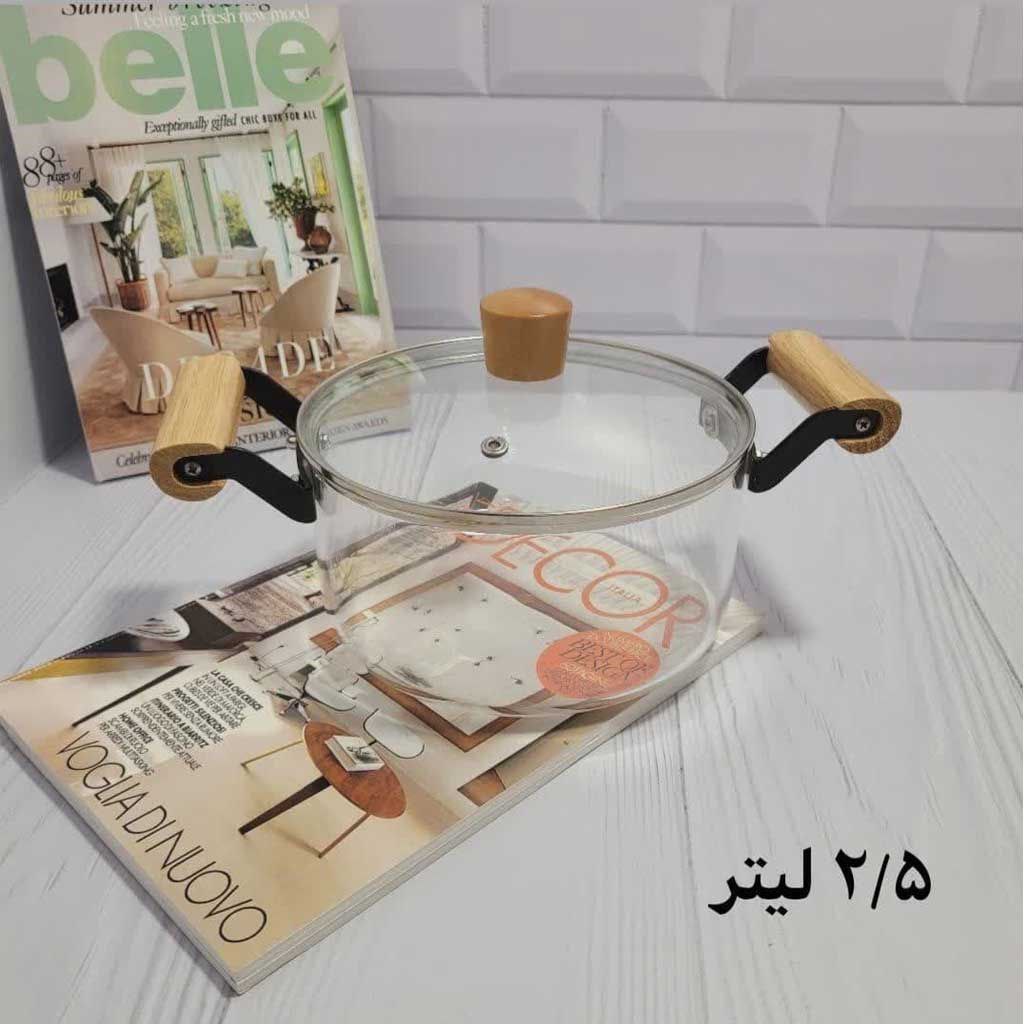 قابلمه شیشهای دسته چوبی ۲/۵لیتری