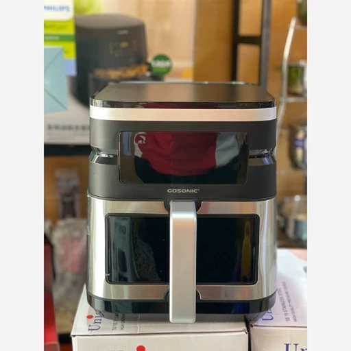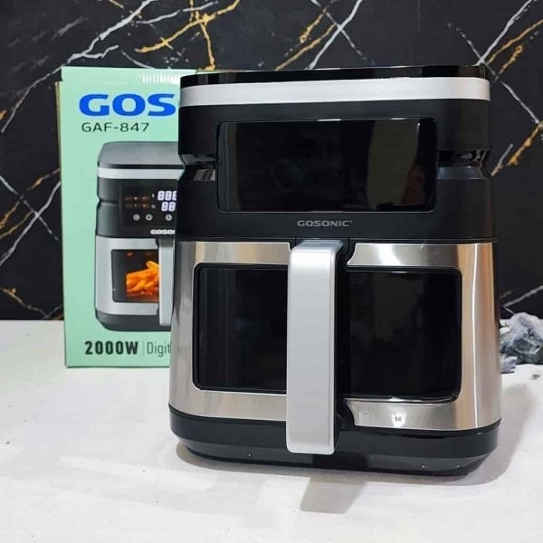 • جنس: ویژگی های محصول ظرفیت : ۷ لیتر توان مصرفی : ۲۰۰۰ وات برند : گوسونیک توان مصرفی : 2000 وات المنت : 2 المنت ( یک المنت در بالا با توان 1500 وا... جنس بدنه : پلاستیک مقاوم ظرفیت : 7 لیتر جنس محفظه داخل دستگاه : استیل ضد زنگ پوشش داخلی بسکت : سرامیک پوشش صفحه داخل بسکت : سرامیک برنامه پخت پیش فرض : 12 برنامه سیستم پخت 360 درجه : دارد نوع نمایشگر : لمسی (رنگی) چراغ داخل بسکت : دارد آلارم آماده شدن غذا : دارد امکان تنظیم دما به صورت دستی : دارد تایمر :دارد قطع کن خودکار : دارد عایق حرارات : دارد دمای قابل تنظیم : تا 200 درحه سانتی گراد زمان قابل تنظیم : تا 60 دقیقه پایه ضد لغزش : دارد