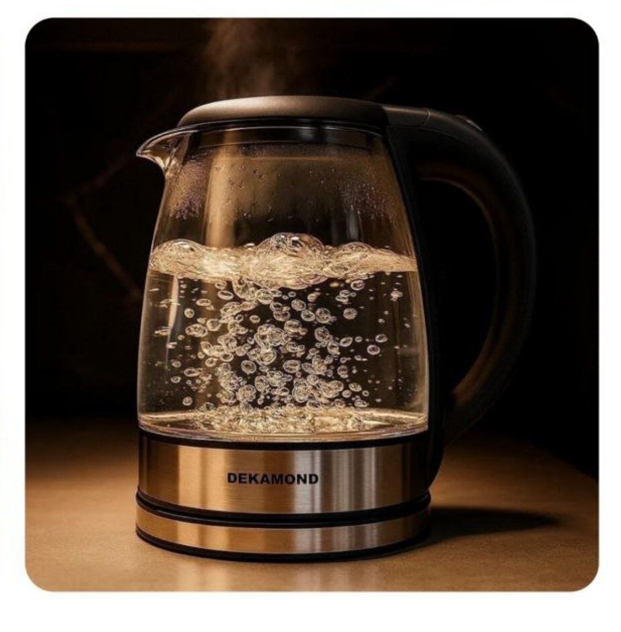 کتری برقی دکاموند با جنس بدنه شیشه ای بسیار مقاوم بوده و دارای ظرفیت مخزن 1.8 لیتر است.امکان چرخش 360 درجه را نیز داراست.